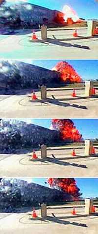 組圖:美國媒體公布飛機撞擊五角大樓瞬間照片 2002年03月08日 09:43 ![]() 五角大樓北面的監(jiān)視鏡頭拍攝的撞擊場面 中新網(wǎng)北京3月8日消息:美國傳媒公開一組去年“九·一一”恐怖襲擊事件中,國防部所在的五角大樓遭被劫持客機撞擊瞬間的照片。 據(jù)美聯(lián)社報道,這組照片共有五幅,是由懸掛在五角大樓北面的一個監(jiān)視鏡頭拍攝的。從照片中看,五角大樓北側(cè)遭飛機撞擊時,從地面騰起一團(tuán)火焰,并冒出滾滾濃煙。