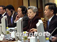 圖:吳儀出席"申辦2010年上海世博會陳述會" 2002年03月11日 17:10 ![]() 中國國務(wù)委員、(上海世博)申辦委主任委員吳儀(右二),十一日在北京釣魚臺國賓館舉行的“申辦2010年上海世博會陳述會談”上,與外交部副部長王亞光(右三)、財政部長金立群(右一)等申辦委副主任委員,出席會談并作發(fā)言。中新社記者 鄒憲 攝