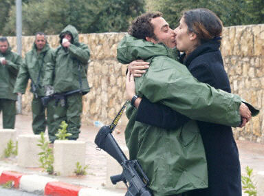 圖:以色列士兵與女友分別前相擁而吻 2002年04月03日 14:17 圖為色列士兵與女友相擁而吻 起火的教堂 在耶路撒冷市和西岸城市伯利恒之間地一處檢查站,一名以色列士兵與女友相擁而吻。以軍進(jìn)入了古城伯利恒,并向教堂開(kāi)火,一名神父被殺,另外六名修女受傷。法新圖