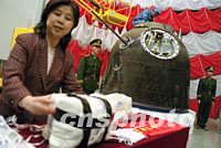 “神舟”三號返回艙開艙 太空“乘客”逐一亮相 2002年04月04日 16:20 ![]() “神州三號”飛船返回艙搭載物品開艙交接儀式,4日在中國空間技術(shù)研究院北京空間技術(shù)研制試驗(yàn)中心舉行,解放軍總裝備部,中科院,中國航天科技集團(tuán)公司等各界相關(guān)人士出席了交接儀式。中新社記者 王瑤 攝