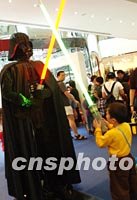 圖:星球大戰(zhàn)的黑武士吸引小童注目 2002年04月08日 15:37 ![]() 在香港太古城舉行的“樂(lè)高動(dòng)感繽紛SHOW”上,星球大戰(zhàn)的黑武士人物造型,吸引小童注目。中新社圖 洪少葵 攝