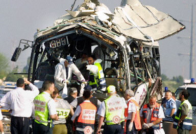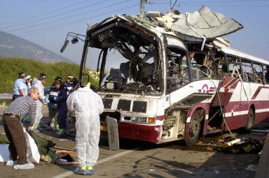 多圖:海法發(fā)生汽車炸彈爆炸事件 哈馬斯宣布負責 2002年04月10日 17:01 ![]() 以色列警方在檢查爆炸汽車的殘骸 ![]() 救援人員將遇難者尸體從汽車殘骸內抬出 中新網北京4月10日消息:當地時間4月10日早(北京時間10日中午),以色列北部港口城市海法發(fā)生一起自殺爆炸事件,至少造成10人死亡,另有20人受傷。 爆炸發(fā)生在一輛公共汽車上,這輛車是從海法開往耶路撒冷的。以色列方面稱此次爆炸為“恐怖襲擊”,哈馬斯組織已經宣布對此次爆炸事件負責。 爆炸發(fā)生前幾小時,以軍曾于黎明時分向約旦河西岸最大城市納布盧斯的巴勒斯坦難民營發(fā)動進攻,現(xiàn)場可見煙火沖天,以軍炮火、重機槍頻頻開火,以軍直升機也發(fā)射了多枚導彈。杰寧也發(fā)生了交火。 爆炸給海法帶來巨大恐慌,3月31日,海法一家餐廳就曾發(fā)生一起自殺性爆炸事件,造成16人喪生。昨晚,以軍士兵在約旦河西岸城市杰寧的難民營遭到伏擊,13人喪生,9人受傷。這是近18個月來以色列方面發(fā)生的最嚴重單起傷亡事件。以色列總理沙龍隨后稱,以軍在約旦河西岸的軍事行動將繼續(xù),直到將巴勒斯坦武裝分子徹底鏟除。(春風)