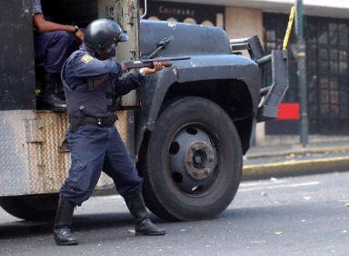 ![]() 委內(nèi)瑞拉當(dāng)?shù)貢r(shí)間4月11日晚(北京時(shí)間12日上午),國(guó)民警衛(wèi)隊(duì)的卡伊魯茲將軍宣布,總統(tǒng)查韋斯的政府已經(jīng)“不再履行其職能”,全國(guó)局勢(shì)已經(jīng)被軍隊(duì)控制。此前,委內(nèi)瑞拉發(fā)生數(shù)十萬(wàn)人罷工,群眾要求查韋斯辭職。他們與警察、國(guó)民警衛(wèi)隊(duì)以及總統(tǒng)的支持者發(fā)生了激烈沖突,至少已導(dǎo)致12人死亡,96人受傷。圖為騷亂中一名國(guó)民警衛(wèi)隊(duì)員躲在車(chē)后準(zhǔn)備射擊。(春風(fēng))