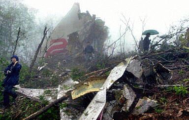 圖:失事飛機(jī)部分殘骸上依稀可見國航標(biāo)志 2002年04月15日 16:10 ![]() 中國國際航空公司一架波音七六七型飛機(jī)十五日從北京起飛于韓國墜毀。圖為失事飛機(jī)墜落爆炸后的部分殘骸上依稀可見國航標(biāo)志。法新圖