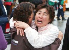 圖:遇難韓國人家屬擁抱痛哭 2002年04月15日 19:20 ![]() 失事飛機上的遇難韓國人家屬擁抱痛哭。法新社圖