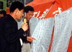 圖:韓國人閱讀失事飛機的乘客名單 2002年04月15日 19:22 ![]() 韓國人在事發(fā)地附近閱讀失事飛機的乘客名單。法新社圖