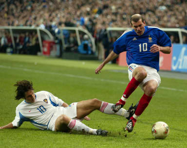 俄羅斯0-0逼和法國隊(duì) 為諸強(qiáng)滅法指點(diǎn)迷津(圖) 2002年04月18日 11:36 ![]() 齊達(dá)內(nèi)的光芒還不足以帶來一場(chǎng)主場(chǎng)勝利?