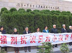 組圖:南京大屠殺幸存者抗議日本首相靖國參拜 2002年04月22日 18:55 ![]() ![]() 四月二十二日下午,南京大屠殺幸存者、受害者遺屬和社會(huì)各界人士?jī)砂俣嗳嗽谇秩A日軍南京大屠殺遇難同胞紀(jì)念館內(nèi)舉行集會(huì),強(qiáng)烈抗議日本首相小泉于昨日再次參拜靖國神社。作者:楊艷