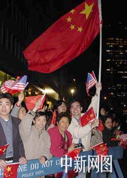 圖文特寫:華僑華人歡迎胡錦濤 點亮紐約"不夜城" 2002年04月29日 13:41 ![]() ![]() 中新社 趙海燕、陳建/攝 中新網(wǎng)紐約四月二十九日消息(記者陳建趙海燕)持續(xù)了一天的春雨使原本在周末就冷清的曼哈頓中城更顯得行人稀少。但二十八日黃昏時分當曼哈頓漸漸進入暮色的時候,卻開始出現(xiàn)了熱鬧的人群。 人群最終聚集在曼哈頓中城五十街與公園大道的交匯處,中國國家副主席胡錦濤今天凌晨抵達紐約訪問下榻在位于這里的華爾道夫酒店。華僑華人熱烈的行動與熱情的標語使這里成為“不夜城”紐約午夜的最亮點。 二十八日晚上十點多鐘的時候,雨已經(jīng)停了,但氣溫剛剛超過攝氏十度,站在華爾道夫酒店外以及對面和側(cè)面的人行道上的華僑華人還是越來越多。他們將帶來的橫幅幾個人共同高舉過頭頂,橫幅上寫“歡迎胡錦濤訪問美國”、“中美友好萬歲”等。紐約已經(jīng)入夜,華僑華人特意用熒光效果制作的標語顯得非常耀眼。 為了這次的迎接,紐約華僑華人已經(jīng)準備了很長時間。設(shè)計歡迎橫幅,設(shè)計歡迎隊伍,甚至設(shè)計紀念品。在他們拿到定制的歡迎橫幅時非常興奮,打電話通知朋友們來看,并準備將橫幅掛在汽車上在紐約的中國城巡游一番。 前天,由中國的陳、胡、袁三姓氏華人組成的至孝篤親公所率先在會所掛起了五星紅旗以及歡迎胡錦濤訪美的大幅標語,并將胡錦濤稱為“宗長”。中美友好協(xié)會等團體還在報紙上刊登了歡迎胡錦濤訪美的恭和廣告。中國旅美科協(xié)發(fā)表公開信敦促美國恪守中美三個聯(lián)合公報的承諾,堅信胡錦濤訪美必將促進中美兩國在各領(lǐng)域的交流合作。美國江浙工商總會特別設(shè)計制作了紀念帽準備送給胡錦濤副主席,從昨晚開始他們站在歡迎隊伍中,每個會員都頭戴一頂紀念帽,非常引人注目。 當人們估計胡錦濤乘坐的汽車就要到達酒店的時候,歡迎人群開始出現(xiàn)更加熱烈的氣氛。有些華僑華人高聲唱起了中國國歌以及五星紅旗高高飄揚、團結(jié)就是力量等歌曲,手舉橫幅的人開始有節(jié)奏地抖動橫幅,人們從不同的角度注視著華爾道夫酒店。這家具有悠久歷史的紐約著名酒店曾多次接待包括中國在內(nèi)的世界各國的著名人物。 胡錦濤訪美之行受到各界的關(guān)注。二十七日胡錦濤結(jié)束對馬來西亞和新加坡訪問后抵達美國夏威夷,繼續(xù)訪美。傳媒即將焦點對準胡錦濤,美聯(lián)社、CNN、BBC等英文媒體都給以圖文報道,當?shù)厝A文媒體更用一版大部分版面報道有關(guān)內(nèi)容,不少華文報紙還開設(shè)相關(guān)專欄詳細報道。 二十七日在夏威夷,胡錦濤發(fā)表機場講話明確表示了他此次訪美的目的:落實江澤民主席和布什總統(tǒng)北京會晤達成的共識,加強中美高層接觸,增進相互了解,推動中美建設(shè)性合作關(guān)系向前發(fā)展。這也正是旅美華人所期待的。 歡迎的人群在凌晨一點才漸漸離去。胡錦濤將在今天專門安排時間再次與華僑華人和留學(xué)生代表見面。(完)