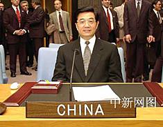 圖:胡錦濤在聯(lián)合國安理會(huì)做"五秒鐘代表" 2002年04月30日 08:44 ![]() 美國東部時(shí)間四月二十九日下午,中國國家副主席胡錦濤一行在首次對(duì)美國進(jìn)行正式訪問期間,來到紐約聯(lián)合國總部參觀。在聯(lián)合國安理會(huì)會(huì)議廳中,胡錦濤坐到常任理事國中國的代表席上留影,并笑稱:“讓我當(dāng)個(gè)五秒鐘的代表吧!敝行律缬浾 陳建 攝