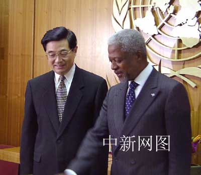 常駐聯(lián)合國大使王英凡的陪同下參觀聯(lián)合國總部。中新社記者 陳建 攝 中新網(wǎng)聯(lián)合國四月二十九日電(記者趙海燕、陳建)今天下午,中國國家副主席胡錦濤在紐約聯(lián)合國總部會見聯(lián)合國秘書長安南時指出,在當(dāng)前復(fù)雜多變的國際形勢下,聯(lián)合國肩負的任務(wù)更加艱巨,其作用只能加強,不能削弱;其權(quán)威只能維護,不能損害。 胡錦濤說,聯(lián)合國成立以來,為解決地區(qū)沖突,促進世界和平、合作與發(fā)展,做了許多有益的工作,發(fā)揮著不可替代的作用。他強調(diào),中國作為安理會常任理事國,將繼續(xù)積極參與聯(lián)合國事務(wù),支持和配合秘書長的工作。 安南向胡錦濤通報了關(guān)于中東、伊拉克等問題的最新進展情況。 關(guān)于中東問題,雙方都認為,國際社會應(yīng)繼續(xù)敦促以巴雙方盡早結(jié)束以暴制暴的惡性循環(huán),政治解決中東問題是唯一可行的途徑。 在談到伊拉克武器核查問題時,胡錦濤高度評價聯(lián)合國為尋求該問題解決所做的努力,他說,世界上大多數(shù)國家都希望政治解決伊拉克問題,不希望看到伊拉克問題而引發(fā)中東和海灣局勢的進一步復(fù)雜和動蕩。 安南高度贊揚中國現(xiàn)代化建設(shè)所取得的巨大成就,感謝中國對發(fā)展同非洲等發(fā)展中國家友好互利合作的一貫重視以及對聯(lián)合國工作的堅定支持。 當(dāng)天下午,胡錦濤還會見了美國前國務(wù)卿基辛格博士,雙方就中美關(guān)系等問題交換了意見。(完)