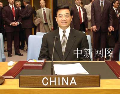 胡錦濤會見安南 雙方就中東等問題交換看法 2002年04月30日 13:44 ![]() 胡錦濤聯(lián)合國會晤安南。中新社記者 陳建 攝 ![]() 胡錦濤在聯(lián)合國安理會做“五秒鐘代表”。中新社記者 陳建 攝 ![]() 胡錦濤在聯(lián)合國副秘書長陳健、中國