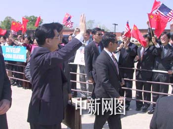 組圖:胡錦濤飛抵華盛頓繼續(xù)對美正式訪問 2002年05月01日 10:39 ![]() 美國當(dāng)?shù)貢r間四月三十日上午十一時許,胡錦濤副主席乘專機(jī)從紐約飛抵華盛頓。圖為胡錦濤副主席和夫人劉永清從中國國際航空公司的飛機(jī)上步下舷梯。中新社 徐德金/攝 ![]() 在安德魯空軍機(jī)場,胡副主席向歡迎人群揮手致意。中新社 徐德金/攝 ![]() 在機(jī)場,胡副主席向華人華僑、留學(xué)生代表揮手致意。中新社 徐德金/攝 ![]() 華盛頓地區(qū)華人華僑、留學(xué)生代表在安德魯空軍機(jī)場歡迎胡錦濤副主席,他們高舉“歡迎胡副主席”、“祝胡副主席訪美成功”、“促進(jìn)中美友誼”等標(biāo)語牌,表達(dá)心聲。中新社 徐德金/攝 ![]() 華盛頓地區(qū)華人華僑、留學(xué)生代表和中國駐美使館工作人員,在安德魯空軍基地?zé)崃覛g迎中國國家副主席胡錦濤訪問美國。中新社 徐德金/攝