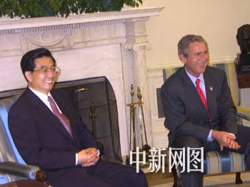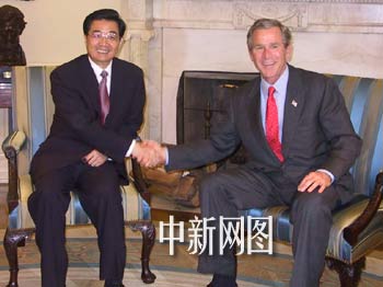 多圖:胡錦濤副主席與美國總統(tǒng)布什舉行會晤 2002年05月02日 08:48 ![]() 美國當(dāng)?shù)貢r(shí)間五月一日下午,美國總統(tǒng)布什在白宮會晤中國國家副主席胡錦濤。中新社 徐德金/攝 ![]() 美國當(dāng)?shù)貢r(shí)間五月一日下午,中國國家副主席胡錦濤在白宮與美國總統(tǒng)布什舉行會晤。圖為胡錦濤、布什微笑面對攝影記者短暫拍照。中新社 徐德金/攝 ![]() 美國當(dāng)?shù)貢r(shí)間五月一日上午,中國國家副主席胡錦濤與美國副總統(tǒng)切尼舉行會談。圖為胡副主席抵達(dá)白宮時(shí)向守候的記者揮手致意。中新社 徐德金/攝 中新網(wǎng)華盛頓五月一日電(記者徐德金)美國當(dāng)?shù)貢r(shí)間五月一日下午,中國國家副主席胡錦濤與美國總統(tǒng)布什舉行會晤。 會晤在白宮橢圓型辦公室舉行。在開放給媒體攝影記者短暫拍照時(shí),布什、胡錦濤滿面微笑、頻頻握手,布什還風(fēng)趣地對記者說,“再拍一張”。 五月一日上午,胡錦濤與切尼副總統(tǒng)在白宮舉行了會談。胡副主席是應(yīng)切尼副總統(tǒng)的邀請?jiān)L問美國的。 下午,胡錦濤還會晤了美國總統(tǒng)國家安全顧問賴斯。 今天,大批媒體記者守候在白宮,采訪胡錦濤副主席與美國領(lǐng)導(dǎo)人的會晤、會談。 胡錦濤副主席今天在五角大樓還會晤了美國國防部長拉姆斯菲爾德。