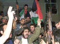 圖文:以軍撤離 阿拉法特首次公開露面(大事回放) 2002年05月02日 09:08 ![]() ![]() ![]() (法新圖) 中新網(wǎng)北京5月2日消息:在以色列完成從其在安姆安拉的總部撤軍后,阿拉法特星期四首次公開露面,但是仍然顯得非常憤怒,并斥責(zé)以軍為“恐怖分子” 在以軍撤出后不久,記者被允許進(jìn)入阿拉法特的官邸內(nèi)。數(shù)十名巴勒斯坦安全人員揮舞著槍支,鼓掌歡呼。還有人作出勝利的“V”字形手勢(shì),也有人互相擁抱慶祝。 但是阿拉法特的情緒仍然非常憤怒。他在以色列撤軍后的首次談話中說:“我發(fā)生什么事并不重要,重要的是發(fā)生在圣誕教堂的事情,這是一種犯罪! 阿拉法特大聲地說道:“這對(duì)于巴勒斯坦人,對(duì)于阿拉法特,對(duì)于穆斯林,對(duì)于基督徒,對(duì)于聯(lián)合國(guó),對(duì)于美國(guó)和俄羅斯來說,都是不可接受的! 阿拉法特稱以軍士兵為“恐怖分子、納粹和種族主義者”他顯得非常疲憊,在長(zhǎng)達(dá)一個(gè)月的圍困中消瘦了不少,但是他針對(duì)以色列發(fā)表的演說比往常更激烈。 附:巴勒斯坦民族權(quán)力機(jī)構(gòu)主席阿拉法特被圍困大事記 2001年 2001年12月3日:以色列空軍空襲阿拉法特在加沙的官邸。次日,以政府宣布巴勒斯坦民族權(quán)力機(jī)構(gòu)為“支持恐怖主義的實(shí)體”。同時(shí),以軍轟炸阿拉法特的專用直升機(jī),破壞加沙國(guó)際機(jī)場(chǎng),轟炸拉姆安拉阿拉法特官邸。受以軍圍困的阿拉法特留在拉姆安拉的官邸。 12月13日:以色列安全內(nèi)閣召開緊急會(huì)議,決定斷絕同阿拉法特的聯(lián)系,稱阿拉法特不再同以色列有任何關(guān)系。 12月24日:以政府禁止阿拉法特前往伯利恒參加圣誕彌撒。 2002年 2月24日-28日:歐盟負(fù)責(zé)外交與安全政策的高級(jí)代表索拉納出訪中東,進(jìn)行新一輪拯救中東和平的外交努力。 3月13日:聯(lián)合國(guó)安理會(huì)通過決議,首次表示支持建立巴勒斯坦國(guó)的“遠(yuǎn)見”,敦促巴以沖突雙方積極配合國(guó)際社會(huì)的調(diào)解努力,立即停止一切暴力沖突,恢復(fù)和談。 3月27日:在阿拉法特缺席的貝魯特第14次阿拉伯國(guó)家首腦會(huì)議上,沙特阿拉伯王儲(chǔ)阿卜杜拉正式提出中東和平新建議,供大會(huì)審議通過。 3月29日:以政府以境內(nèi)不斷發(fā)生自殺性爆炸為由,宣布阿拉法特為“敵人”。以軍大舉入侵約旦河西岸城市拉姆安拉,并攻入了阿拉法特官邸。同日,以軍發(fā)動(dòng)“防衛(wèi)墻軍事行動(dòng)”,對(duì)杰寧市及杰寧難民營(yíng)發(fā)動(dòng)大規(guī)模軍事襲擊。到4月19日,杰寧難民營(yíng)始終處于以軍的重兵占領(lǐng)之下。巴方指責(zé)以軍在杰寧難民營(yíng)的軍事行動(dòng)中至少殺死了500人,使難民營(yíng)中8000多名巴難民無家可歸。巴方要求聯(lián)合國(guó)派出調(diào)查組進(jìn)行調(diào)查。 3月30日:聯(lián)合國(guó)安理會(huì)通過1402號(hào)決議,呼吁中東沖突雙方立即實(shí)現(xiàn);穑笠陨袕陌ò屠账固钩鞘欣钒怖趦(nèi)的被占領(lǐng)土撤軍。 4月1日:以軍隊(duì)對(duì)約旦河西岸巴控制區(qū)再次發(fā)動(dòng)大規(guī)模軍事進(jìn)攻,并圍困了在拉姆安拉的阿拉法特總統(tǒng)府,以巴緊張局勢(shì)不斷升級(jí)。 4月5日:美國(guó)中東特使津尼在拉姆安拉同阿拉法特舉行會(huì)晤。 4月15日:以軍在拉姆安拉逮捕巴勒斯坦民族解放運(yùn)動(dòng)(法塔赫)在約旦河西岸的總書記巴爾古提。以方指控他是針對(duì)以色列的自殺爆炸和襲擊事件的主要組織者。 4月17日:美國(guó)國(guó)務(wù)卿鮑威爾結(jié)束在中東地區(qū)的穿梭訪問。為期10天的斡旋中,他三會(huì)以色列總理沙龍,兩晤巴勒斯坦領(lǐng)導(dǎo)人阿拉法特,終究沒有說服雙方達(dá)成一個(gè);饏f(xié)議。 4月19日:聯(lián)合國(guó)安理會(huì)通過第1405號(hào)決議,授權(quán)成立杰寧調(diào)查組,負(fù)責(zé)對(duì)以軍進(jìn)攻難民營(yíng)時(shí)殺害巴平民的事實(shí)真相進(jìn)行調(diào)查。但以色列方面則多次以調(diào)查組人員構(gòu)成不合理為由拒絕該小組進(jìn)入約旦河西岸。聯(lián)合國(guó)調(diào)查組滯留日內(nèi)瓦。 4月28日:以同意接受美國(guó)總統(tǒng)布什提出的旨在結(jié)束對(duì)巴領(lǐng)導(dǎo)人阿拉法特圍困的新建議。 4月29日:以色列和巴勒斯坦雙方證實(shí),3月29日以來一直被圍困在拉姆安拉官邸的巴勒斯坦民族權(quán)力機(jī)構(gòu)主席阿拉法特從當(dāng)天起重獲自由。 5月2日:在以色列完成從其在安姆安拉的總部撤軍后,阿拉法特首次公開露面,但仍憤怒地斥責(zé)以軍為“恐怖分子”。
