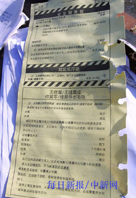 組圖:搜尋船只已經(jīng)打撈出了部分墜海飛機(jī)物品 2002年05月08日 23:54 ![]() 事故現(xiàn)場(chǎng)打撈上來(lái)的航海日志