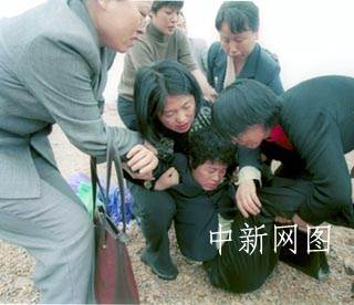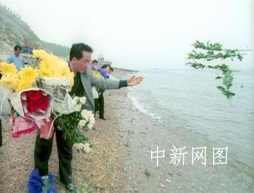 組圖:5月13日大連空難遇難者家屬舉行海祭 2002年05月13日 20:28 ![]() ![]() 圖為張豐儀的母親姜曉云悲痛難抑,暈倒在海邊。 ![]() 張廷家生前是東北電業(yè)管理局第二工程公司的工程師,圖為他的同事在大連海濱撒花祭奠 大連海事大學(xué)附屬小學(xué)五年級(jí)學(xué)生張豐儀和爸爸張廷家均在“五·七”空難中不幸罹難。五月十三日,張豐儀的母親姜曉云等親屬到飛機(jī)失事海域?yàn)樗麄兣e行海祭。中新社圖 王麗南 攝