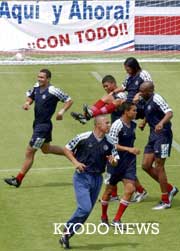 哥斯達(dá)黎加隊(duì)在日本鈴鹿市進(jìn)行首次訓(xùn)練(圖) 2002年05月15日 14:42 ![]() 哥斯達(dá)黎加國腳們進(jìn)入集訓(xùn)地后立刻開始訓(xùn)練(14日上午攝于三重縣鈴鹿市的運(yùn)動(dòng)場=共同社) 中新網(wǎng)北京5月15日消息:世界杯參賽國——哥斯達(dá)黎加國家隊(duì)14日在三重縣鈴鹿市的運(yùn)動(dòng)場內(nèi)進(jìn)行了首次訓(xùn)練,開始了備戰(zhàn)世界杯正式比賽的調(diào)整訓(xùn)練。 據(jù)“共同社”報(bào)道,哥斯達(dá)黎加隊(duì)作為首支到達(dá)日本的世界杯參賽國于13日晚上到達(dá)鈴鹿市。在主教練吉馬雷斯的指揮下,23名球員在用球訓(xùn)練中進(jìn)行了小比賽等,大聲呼喊汗流浹背。右膝傷病令人擔(dān)心的主力前鋒萬喬普也展示了輕快的動(dòng)作。 吉馬雷斯主教練表示“訓(xùn)練環(huán)境非常好。我們的目標(biāo)是在世界杯中盡可能走得遠(yuǎn)一點(diǎn)?傊椭袊(duì)進(jìn)行的首場比賽非常重要!备缢惯_(dá)黎加隊(duì)將在鈴鹿市集訓(xùn)到23日。