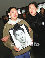 圖:“永別了,親人”--愛(ài)子手捧父親的遺像參加追悼會(huì) 2002年05月16日 19:40 ![]() 十六日,“五·七”遇難者首批遺體在大連殯儀館火化并舉行追悼會(huì),交通部水運(yùn)規(guī)劃設(shè)計(jì)院工程師毛鎧的愛(ài)子,手捧父親的遺像悲傷不已。逝者三十八歲,曾參加廣東大亞灣、海南天然氣碼頭、大連三十萬(wàn)噸碼頭等多項(xiàng)國(guó)家重點(diǎn)工程規(guī)劃設(shè)計(jì)。作者:王麗南