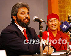 圖文:臺(tái)佛界捐款百萬(wàn)港幣重修阿富汗巴米揚(yáng)大佛 2002年05月17日 16:34 ![]() 5月16日臺(tái)灣宗教界著名心道法師聯(lián)同聯(lián)合國(guó)千年世界和平峰會(huì)秘書(shū)長(zhǎng)巴瓦金(Bawa Jain)(左)遠(yuǎn)道來(lái)港,在萬(wàn)豪酒店召開(kāi)記者會(huì),宣布由臺(tái)灣世界宗教博物館捐贈(zèng)一百萬(wàn)港幣給阿富汗,作為重建“巴米揚(yáng)”大佛像經(jīng)費(fèi)。中新社圖 洪少葵 攝