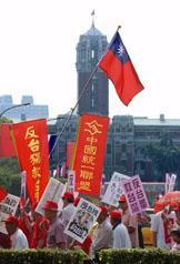 臺北"反臺獨救臺灣"大游行吁當(dāng)局放棄"臺獨"黨綱 2002年05月19日 16:30 ![]() 臺灣中國統(tǒng)一聯(lián)盟5月19日發(fā)起“反臺獨、救臺灣”萬人大游行。民眾以醒目標(biāo)語及旗幟,表達(dá)支持一個中國、反對“臺獨”的立場。(“中央社”圖) ![]() 臺灣中國統(tǒng)一聯(lián)盟5月19日發(fā)起“反臺獨、救臺灣”萬人大游行,在“美國在臺協(xié)會”門前,由一名面戴面具、扮作美國總統(tǒng)布什的男子跪地磕頭,就美國干涉臺海事務(wù)向臺灣民眾道歉。(“中央社”圖) 中新社香港五月十九日電 臺北消息:中國統(tǒng)一聯(lián)盟今天發(fā)起“五一九反臺獨、救臺灣大游行”,數(shù)千臺灣民眾身穿“One China”的紅上衣及紅帽子,高呼“反臺獨、救臺灣”,以表達(dá)他們支持一個中國、反對臺獨的立場。 據(jù)“中央社”報導(dǎo),游行隊伍于下午在臺北“中正紀(jì)念堂”出發(fā),民眾在經(jīng)過美國在臺協(xié)會時高呼“ROT(臺灣共和國),爛!爛!爛!One China,贊!贊!贊!”的口號,部分情緒激動的民眾并向美國在臺協(xié)會投擲雞蛋。 游行活動總領(lǐng)隊、中國統(tǒng)一聯(lián)盟主席王津平,日前在獨派人士的“臺灣正名”游行活動中遭到攻擊而受傷,今天他在游行前發(fā)表演講,抨擊臺灣當(dāng)局兩年來,在民進(jìn)黨臺獨黨綱箝制下,導(dǎo)致兩岸關(guān)系緊張、經(jīng)濟嚴(yán)重衰退、社會混亂不安。 王津平說,今天“反臺獨、救臺灣”大游行的主要訴求,就是呼吁當(dāng)局撤除臺獨黨綱,遵守“一個中國”,回歸“九二共識”。 中新網(wǎng)香港5月19日消息:臺北訊,臺灣中國統(tǒng)一聯(lián)盟今天號召發(fā)起數(shù)十個島內(nèi)“在野”政黨次級團體、反“臺獨”的民眾、車隊共同參與的“519反‘臺獨’、救臺灣萬人大游行”。 此次大游行由中國統(tǒng)一聯(lián)盟主席王津平擔(dān)任總領(lǐng)隊。日前為反制“臺獨”集團的所謂“臺灣‘正名’游行”而遭暴力攻擊并受傷的王津平,在游行出發(fā)前發(fā)表演說指出,陳水扁上臺兩年以來,都因為“臺獨”黨綱箝制當(dāng)局政策發(fā)展,導(dǎo)致兩岸關(guān)系緊張、島內(nèi)嚴(yán)重經(jīng)濟衰退、社會混亂。 此次游行的主要訴求,就是呼吁陳水扁當(dāng)局及民進(jìn)黨撤除“臺獨”黨綱,遵守“一中原則”,回歸“九二共識”,以正式渠道恢復(fù)兩岸談判;立即三通,加速經(jīng)濟互補互利。 此外,游行隊伍向當(dāng)局喊出“反軍購、要福利”、“要顧三通,不要神盾”等口號。 據(jù)悉,游行隊伍也以踐踏美國國旗的方式,表達(dá)對美國介入臺海事務(wù)的強烈不滿。 另外,中國統(tǒng)一聯(lián)盟今晚將在舉辦“中國人團結(jié)之夜”音樂會,呼應(yīng)白天的游行主題。 相關(guān)報道:臺灣中國統(tǒng)一聯(lián)盟控告李登輝及"臺獨"分子施暴 相關(guān)報道:董建華會見臺灣"中國統(tǒng)一聯(lián)盟一國兩制參訪團" 相關(guān)報道:臺灣中國統(tǒng)一聯(lián)盟訪港考察"一國兩制"實施情況 相關(guān)報道:臺灣中國統(tǒng)一聯(lián)盟抗議海外"臺獨"組織在臺興風(fēng)作浪 相關(guān)報道:臺灣“中國統(tǒng)一聯(lián)盟”抗議日相參拜靖國神社 相關(guān)報道:臺灣中國統(tǒng)一聯(lián)盟等十多個團體抗議達(dá)賴訪臺 相關(guān)報道:臺灣中國統(tǒng)一聯(lián)盟座談會指臺灣沒理由抗拒“一國兩制”