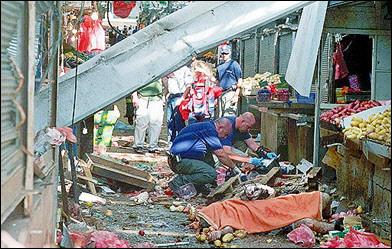 以色列內坦亞爆炸3人死亡 以軍開進拉馬拉 2002年05月20日 08:08 ![]() 以色列北部海濱城市內坦亞市中心的一個集貿市場發(fā)生自殺式炸彈爆炸。(法新圖) 中新網北京5月20日消息:耶路撒冷訊,以色列北部海濱城市內坦亞19日下午發(fā)生的自殺式炸彈爆炸中,死亡人數(shù)目前已經上升至3人,另外還有至少50人受傷,其中8人傷勢嚴重。 以色列電視臺報道說,爆炸發(fā)生在當?shù)貢r間16時25分前后(北京時間21時25分),爆炸地點為內坦亞市中心的集貿市場。巴勒斯坦激進組織哈馬斯已經宣布對此次襲擊負責。 美聯(lián)社報道說,這名發(fā)動自殺式炸彈襲擊的巴勒斯坦人身穿著以色列陸軍軍服,于周日混入內坦亞市中心的一個集貿市場。 幾個小時后,巴勒斯坦目擊者稱,一些以軍坦克開進了西岸城市拉馬拉。而以軍發(fā)言人則稱,開進拉馬拉的只是幾輛裝甲運兵車而非坦克。這些部隊短時間內即撤出了該城市,沒有傷及巴勒斯坦人。