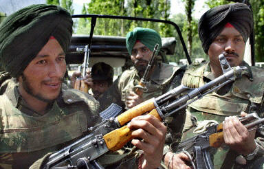 圖:印總理巡視克什米爾 士兵進(jìn)行安全巡視 2002年05月23日 16:33 印度總理瓦杰帕伊5月22日來到克什米爾邊境地區(qū)進(jìn)行視察,并向守衛(wèi)在那里的士兵發(fā)表演講。圖為印度軍隊(duì)士兵進(jìn)行安全巡視。法新供中新