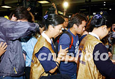 中新社記者現(xiàn)場報(bào)道:悲痛籠罩臺北機(jī)場(多圖) 2002年05月26日 11:14 ![]() 遇難乘客中5名香港旅客的19名家屬,26日0時30分抵達(dá)臺北桃園機(jī)場。中新社記者 任晨鳴 攝