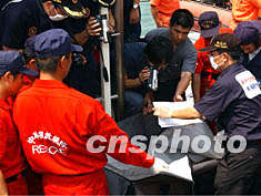 圖:全方位監(jiān)定失事華航客機乘客尸體 2002年05月26日 16:25 ![]() 5月26日中午,臺灣救援各部門對打撈出的遇難乘客尸體先進行攝影、攝相、DNA等項全面監(jiān)定后再交家屬認(rèn)領(lǐng)。中新社記者 任晨鳴 攝