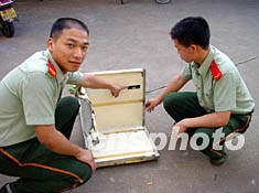 圖:一塊華航空難客機(jī)殘骸運(yùn)抵泉州 2002年05月30日 10:37 ![]() 五月二十九日下午,“閩泉漁0一七九號”漁船將打撈出的一塊華航客機(jī)殘骸交予邊防派出所。這塊客機(jī)殘骸是一塊“T”字型的鋁合金邊的木板,木板邊沿上刻有“409A”、“409”兩處紅色標(biāo)記,一塊木板右上側(cè)貼有一小塊黑色的鐵皮,上面印有“MAX.INSERT”和“WEIGHT 40.0 POUNDS”兩排英文字母。徐承彬 攝