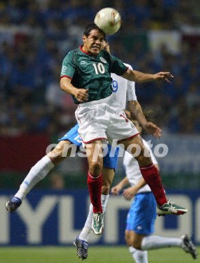 圖:墨西哥VS意大利 布蘭科與贊布羅塔爭頂 2002年06月13日 20:02 ![]() 韓日世界杯G組墨西哥隊與意大利隊的比賽在日本大分大眼睛體育場進行,目前比賽正在進行,場上比分為墨西哥1-0領(lǐng)先。圖為墨西哥隊10號布蘭科飛身爭奪頭球。
