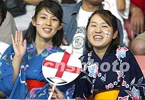 圖:日本女球迷為英格蘭隊(duì)助威 2002年06月15日 22:52 ![]() 世界杯足球賽八分之一決賽十五日在日本新瀉開(kāi)賽,英格蘭隊(duì)(白衣)以三比零大勝丹麥而進(jìn)入八強(qiáng)。圖為身穿和服的日本女球迷為英格蘭隊(duì)助威。作者:毛建軍