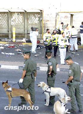 耶路撒冷再次發(fā)生自殺性爆炸事件 至少7死37傷 2002年06月20日 06:52 ![]() 以色列警察和搜索炸彈的專家在耶路撒冷法蘭西山附近。 中新網(wǎng)北京6月20日消息:耶路撒冷19日晚上發(fā)生一起自殺性爆炸事件,至少造成7人死亡,37人受傷。這是耶路撒冷市區(qū)在不到48小時(shí)內(nèi)發(fā)生的第二起自殺性爆炸事件。 爆炸發(fā)生在東耶路撒冷的法蘭西山附近的一個(gè)交叉路口。據(jù)耶路撒冷警察局局長(zhǎng)列維說(shuō),兩名以色列邊防警察在此路口發(fā)現(xiàn)一名神色可疑的人,在警察準(zhǔn)備上前盤(pán)查時(shí)此人引爆了綁在身上的炸彈。 據(jù)國(guó)際在線報(bào)道,巴勒斯坦主流派別法塔赫下屬的“阿克薩烈士旅”已宣稱對(duì)此次爆炸事件負(fù)責(zé)。 耶路撒冷18日曾發(fā)生一起自殺性爆炸事件,共有19名以色列人喪身,50多人受傷。(陳莊)