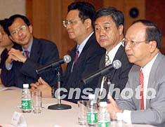 章孝嚴(yán)率團(tuán)經(jīng)香港前往祖國(guó)大陸為兩岸三通探路 2002年06月23日 08:46 ![]() 由章孝嚴(yán)為團(tuán)長(zhǎng)的臺(tái)灣"中國(guó)臺(tái)商發(fā)展促進(jìn)協(xié)會(huì)"參訪團(tuán),6月22日下午在香港與曾鈺成等多位香港立法會(huì)議員、學(xué)者專家、中央政府駐香港聯(lián)絡(luò)辦臺(tái)灣事務(wù)部部長(zhǎng)邢魁山等座談"一國(guó)兩制"等問(wèn)題。任晨鳴 攝