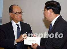 李嘉誠贊香港特區(qū)“問責制”新班子非常好(圖) 2002年06月26日 08:50 ![]() 香港首富、長江實業(yè)集團主席李嘉誠,6月25日在香港將一千萬港元支票交與中聯(lián)辦主任姜恩柱,以救濟今夏中國大陸遭受嚴重水災的地區(qū)民眾。中新社記者 任晨鳴 攝