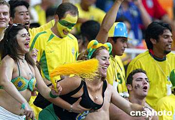 圖:巴西球迷熱情如火 2002年06月27日 16:56 ![]() 世界杯足球賽四分之一決賽巴西隊(duì)與英格蘭隊(duì)的比賽,二十一日在日本靜岡舉行,結(jié)果巴西以二比一獲勝而進(jìn)入四強(qiáng)。熱情似火的巴西球迷在看臺(tái)上吶喊助威。作者:毛建軍
