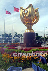 圖:金紫荊廣場布置鮮花迎回歸五周年慶典 2002年06月28日 20:39 ![]() 香港會展中心金紫荊廣場將在7月1日舉行隆重的升旗禮,6月28日園藝工人頭頂烈日在金紫荊廣場布置鮮花,迎接回歸五周年慶典。洪少葵 攝