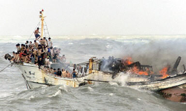 海上惡夢連連 臺報披露大陸漁工遭受不人道歧視 2002年07月10日 15:28 ![]() 漁工擠到船的一端急切待救。(法新圖) “元勝二號”起火時風浪甚大,漁工幾乎被巨浪吞噬。 中新網(wǎng)香港7月10息:臺北訊,作為祖國大陸漁工“海上旅館”用的臺灣屏東籍“元勝二號”漁工船,昨天在高雄海域發(fā)生火災。事件中132人獲救,一人失蹤。今天有臺灣媒體介紹大陸漁工在船屋中的艱辛境遇,批評臺當局罔顧大陸同胞生命安全的做法。 臺灣《聯(lián)合報》報道說,昨天死里逃生的“元勝二號”上的大陸漁工,談起船屋種種境況,不無憤懣不平。在船難中受傷住院的張永說:“每天睡覺沒有固定的位置,廚房、機艙、甲板都成了臥室。一坪大的空間要擠上四個人,進艙是用爬的,睡覺從沒伸直過腳,很少吃到蔬果,真苦!” “漁工通常要住在海上旅館十天以上,再搭船出海,期間吃喝拉撒睡都在船上又臟又臭。漁工都期盼能早點出海捕魚,不必像住海上旅館一樣,夢魘連連!边@次意外中頭、手受創(chuàng)而住院的陳良紅訴苦。 報道說,來自祖國大陸各地的漁工,為了每個月賺一百多美元工資,長期忍受“海上旅館”的惡劣環(huán)境。此次出事的“元勝二號”,不到80噸,卻擠了133人。報道指出,有的船屋更住了一百五、六十人,漁工連睡覺翻身都困難。 據(jù)報道,臺當局“海巡署”及警方調(diào)查“元勝二號”起火原因時,獲救住院的漁工沈繼兵指出,7日晚上他們就發(fā)現(xiàn)發(fā)電機房冒火花,斷電好幾次,向輪機長反映后,輪機長竟說“沒什么關系”,不料終于發(fā)生火警。 “元勝二號”上原有128名大陸漁工,5名越南漁工。昨天火災過程中,臺灣有關方面出動直升飛機,經(jīng)過近5個小時,救出132人,其中10人受創(chuàng)住院,一名大陸漁工落海失蹤。 昨天發(fā)生事故的“元勝二號”是臺灣屏東縣籍的漁工“海上船屋”。據(jù)悉,因臺當局動不動視祖國大陸漁工為“危險份子”,不允許祖國大陸漁工上岸,這一類船屋被專門用于出海作業(yè)漁船雇用的大陸漁工居住。 但媒體指出,島內(nèi)當局如此對待祖國大陸漁工,不僅“海上船屋”的環(huán)境臟擠早為人詬病,且造成臺當局不人道的負面形象。 報道指出,逗留在“海上船屋”的大陸漁工,除非避臺風和發(fā)生急病,不被容許上岸。相反,臺灣商船、漁船人員則可自由地在祖國大陸的港口上岸。 據(jù)報道,島內(nèi)許多漁會代表在不同會議場合,再三以人道理由,并與東南亞外勞所獲優(yōu)厚待遇作對比,要求臺灣當局不要歧視大陸漁工,公平對待。他們希望在陸地上安置大陸漁工,但多年的力爭至今未見成效。 海峽兩岸關系協(xié)會有關人士昨天就“元勝二號”船屋起火,人員大部獲救之事發(fā)表談話表示,大陸有關方面對遇險漁工的境況十分關心,海協(xié)已致函“兩岸人民服務中心”,向臺灣有關方面及參與救助的全體人員表達誠摯的謝意。但海協(xié)也希望臺灣方面改變不合理做法,確保大陸漁工應有的合理待遇和人身安全,防止類似事件再度發(fā)生。 據(jù)島內(nèi)媒體報道,祖國大陸漁工安置問題在昨天這場海上大火事件后再度引起關注,已有“立委”向當局“行政院”緊急質(zhì)詢,并呼吁當局盡快研究在蘇澳等五處漁港設置大陸漁工安置中心的計劃。 相關報道:高雄外海漁船火警 十一名大陸漁工送醫(yī) 相關報道:大陸船屋在高雄港起火獲救 海協(xié)就此事發(fā)表談話 相關報道:大陸漁工船失火:133人獲救 2人重傷 1人失蹤 相關報道:大陸又提供高價值資料 華航空難調(diào)查發(fā)現(xiàn)新線索 相關報道:"突然巨浪打來…"大陸獲救漁工回憶海上大火驚魂 相關報道:臺灣對祖國大陸出口趨增 上半年同比增長逾七成 相關報道:大陸漁工船起火132人獲救 落水失蹤人數(shù)說法不一 相關報道:圖文:大陸漁工船屋被燒毀 128名漁工全部獲救 相關報道:七位大陸漁工在高雄急救 有人跳海 船屋沉沒一半 相關報道:臺灣船屋失火 救起60余大陸漁工 尚有30多待救 相關報道:搭載大陸漁工的船只在臺灣海峽失火 100多人待救 相關報道:一艘載有100多人的大陸漁船在臺灣海峽著火