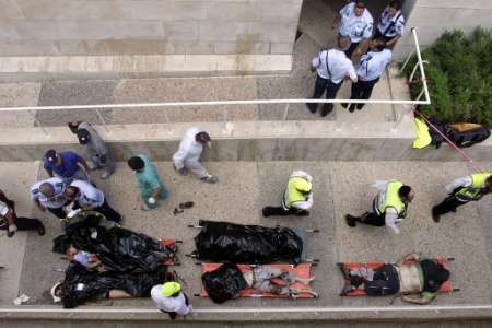 (圖)耶路撒冷希伯來大學(xué)餐廳發(fā)生爆炸致7死85傷 2002年07月31日 19:08 ![]() ![]() ![]() 中新網(wǎng)北京7月31日消息:據(jù)美聯(lián)社報(bào)道,耶路撒冷東部希伯來大學(xué)的一個(gè)餐廳31日午餐時(shí)間發(fā)生爆炸,造成7人死亡,85人受傷,其中14人重傷。 巴勒斯坦激進(jìn)組織伊斯蘭抵抗運(yùn)動(dòng)哈馬斯宣布對(duì)此次爆炸事件負(fù)責(zé),并稱這是對(duì)以色列23日轟炸加沙居民樓進(jìn)行的報(bào)復(fù)。 雖然以色列的各大學(xué)目前均已放假,但發(fā)生爆炸時(shí)仍有許多留校學(xué)生正在咖啡廳用午餐。 事發(fā)后,新華社記者與在該大學(xué)區(qū)讀書的幾名中國(guó)留學(xué)生取得了聯(lián)系。據(jù)他們介紹,由于學(xué)校放假,中國(guó)學(xué)生均離開了學(xué)校,在爆炸中沒有中國(guó)學(xué)生受傷。目前有十幾名中國(guó)留學(xué)生在該大學(xué)區(qū)讀書。 死傷的人員中大部分為18-30歲的學(xué)生,其中許多為外國(guó)學(xué)生。這是自以巴沖突爆發(fā)以來,在以色列校園內(nèi)發(fā)生的首起爆炸襲擊事件。 巴勒斯坦民族權(quán)利機(jī)構(gòu)事后發(fā)表聲明譴責(zé)爆炸事件。以色列總理沙龍取消了當(dāng)天的所有日程安排,預(yù)計(jì)以色列內(nèi)閣將召開會(huì)議。 美國(guó)總統(tǒng)布什強(qiáng)烈譴責(zé)本次襲擊。他呼吁巴勒斯坦民族權(quán)利機(jī)構(gòu)致力制止恐怖主義,并強(qiáng)調(diào)美國(guó)不會(huì)放棄推動(dòng)中東實(shí)現(xiàn)和平。 在昨日,巴勒斯坦激進(jìn)份子,在耶路撒冷市中心,發(fā)動(dòng)自殺式襲擊,造成一死七傷。
