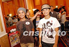 圖:TWINS成員夏日戴冷帽 2002年08月05日 21:50 ![]() 香港偶像組合Twins,8月5日出席新城臺(tái)慶記者會(huì),蔡綽妍【左】頭戴冷帽引人注目。 洪少葵 攝