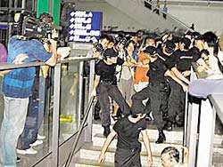 F4成員仔仔吐心聲:隨時可以退出娛樂圈(圖) 2002年08月08日 11:16 ![]() F4一步出機場,歌迷立即群情洶涌,將4人團團圍住 ![]() F4在香港,所到之處都引來歌迷尖叫連連,場面混亂 中新網(wǎng)香港8月8日消息:繼謝霆鋒、鄭秀文分別宣布暫別和淡出娛樂圈后,F(xiàn)4的成員仔仔周渝民向友人吐心聲,表示自己“已經(jīng)賺到這輩子不可能賺到的錢,隨時可以退出娛樂圈! 據(jù)聯(lián)合晚報的報道說,仔仔與臺灣女星錢韋杉因合拍《流星花園》而成好友,仔仔經(jīng)常向這位師姐傾吐心事。 錢韋杉坦言:“仔仔曾對我表示他已經(jīng)賺到這輩子不可能賺到的錢,他隨時可以退出娛樂圈! 錢韋杉眼中的仔仔非常節(jié)儉,生活過得樸實,雖然近年因F4走紅而大受歡迎,四人賺了不少錢,但仔仔從不會亂花錢。 她笑說:“他最近買了輛二手寶馬房車,都一直喊很奢侈。” 她也透露,仔仔并非一個野心太大的人,還曾向她表示因F4走紅,令其生活起了很大變化,一下子難以適應,加上又有不少具傷害性的傳聞,令他感到悶悶不樂。 盡管傳出有意退出娛樂圈,但仔仔前晚與F4其他成員,出席在香港舉行百事可樂歌迷聚會時,仍然十分“盡責”地大施“媚眼功”,擠眉弄眼“電”歌迷。