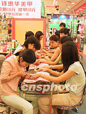 圖:廣州女郎時興美甲 2002年08月11日 19:05 ![]() 廣州時興妝扮指甲,雙休日美甲店里坐滿了美甲女郎。作者:邢健