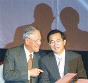 陳水扁與李登輝同臺現(xiàn)身 一唱一和鼓吹“臺獨” 2002年08月12日 09:49 ![]() 李登輝(左)與陳水扁交頭接耳(臺灣聯(lián)合報圖) 中新網(wǎng)香港8月12日消息:臺北訊,陳水扁與李登輝昨天先后在“臺獨”黨派“臺灣團結聯(lián)盟”一周年“黨慶”活動中放話,再放“臺獨”厥詞,而且兩人致詞內(nèi)容明顯相互呼應。 在“臺聯(lián)黨”的“特別安排”下,陳水扁與李登輝兩人繼陳氏拋出“一邊一國論”之后,首度公開同臺亮相。 陳水扁在發(fā)言時未提所謂“一邊一國”論,但又抹黑中國大陸對臺灣“武力威脅”和“國際打壓”,并鼓動說:“對的信念絕不放棄,對的路要繼續(xù)走! 陳水扁還用閩南語說,“不能被人唬得驚驚到”,要“歡喜看未來”。 李登輝隨后發(fā)言公開支持陳水扁,聲稱“百分之百”支持所謂“一邊一國”論,并指此論為“事實的表述”。這名“臺聯(lián)黨”的“精神導師”更鼓吹堅持臺灣“主權獨立”,并指兩岸是“國與國的關系”。 李登輝呼應陳水扁“不要被嚇倒”的說法,對“臺獨”份子放話說“免驚啦”,而且“不要被臺北‘外來政權’的大本營與統(tǒng)派媒體嚇倒”。 島內(nèi)媒體報道指出,陳水扁與李登輝先后發(fā)言的內(nèi)容明顯相互呼應,陳水扁要“臺聯(lián)黨”在當局“立法院”中力拼李登輝定的“指標”說35席,李登輝則說“很不好意思,還差20多席”;陳水扁要大家不要被中國大陸“嚇倒”,李登輝則要大家“安心”。兩人不僅相偕進場,而且陳水扁在臺上講話時,臺下的李登輝頻頻拍手。
