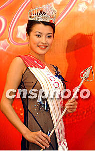 ![]() 二十一歲的香港大學生蔡潔雯在二00二年度香港小姐競選中,獲得卓越才藝小姐大獎。她表示努力成為一個成功藝人。洪少葵 攝