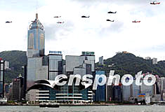 圖:香港政府飛行服務隊送別黑鷹迎新美洲豹 2002年08月15日 21:05 ![]() 香港政府飛行服務隊的九架直升機8月15日在晴朗的香港維多利亞港灣上空列隊緩緩飛行,向即將退役的黑鷹直升機致敬。該飛行隊將由新型超級美洲豹直升機替換服務了十二年的黑鷹直升機。任晨鳴 攝