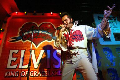 圖:"貓王"逝世25周年吉隆坡舉辦模仿賽 2002年08月16日 16:51 ![]() 為紀念8月16日“貓王”逝世25周年,在馬來西亞吉隆坡舉辦了模仿“貓王”艾爾維斯·普雷斯利的比賽中演唱。獲勝者將前往“貓王”家鄉(xiāng)旅行。