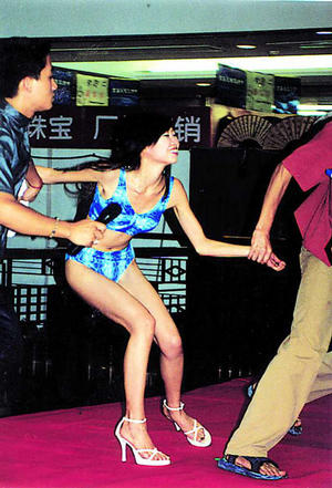 圖文:女模特脫衣推銷 男朋友憤而攪場 2002年08月19日 10:30 ![]() ■長衫就是“防腐層”■短裙代表“塑料”■脫得只剩內(nèi)衣 ![]() ■男友硬拉模特離場 攝影/趙訓成 中新網(wǎng)北京8月19日消息:讀者趙先生昨天給北京青年報打來熱線說,他前天在一個購物廣場看到一個管道廠家為了讓人們更了解“管道”的內(nèi)部結構,竟然讓兩位假扮“管道”的小姐一層一層脫道具服,直到小姐的男友出面干涉才罷休。 趙先生講述了事件的整個過程:“當時,我在商場購物,看見一家管道企業(yè)正在推介產(chǎn)品。兩位扮演‘管道’的女模特當著眾人的面脫起衣服,這讓不少觀眾大吃一驚,還有一些母親趕緊捂上孩子的眼睛。這兩位女模特直到露出了穿在里面的內(nèi)衣才停止。忽然,一位女模特的男友出現(xiàn),硬拉女模特要離開,但廠家人員就是不讓,雙方開始爭執(zhí),場面頓時變得異;靵y! 有關廣告專家分析說,讓消費者反感的廣告形式有可能抬高了企業(yè)的“知名度”,但是卻降低了產(chǎn)品的“美譽度”,反而會給產(chǎn)品銷售帶來負面效果。畢竟,消費者是否選擇這種產(chǎn)品,最終還是決定于產(chǎn)品質(zhì)量和售后服務,這樣的“秀”還是少做為好。(王旭)
