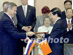 雙方重申,決心繼續(xù)支持雙方為維護(hù)各自國(guó)家主權(quán)、獨(dú)立和領(lǐng)土完整所作的努力。俄方重申支持中方在臺(tái)灣、西藏問(wèn)題上的原則立場(chǎng)和打擊“東突”恐怖分裂勢(shì)力的努力。中方支持俄方打擊車(chē)臣恐怖和分裂勢(shì)力的努力。
