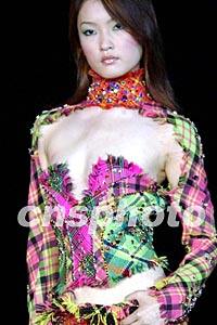 意大利著名服裝名牌“蓋·馬帝洛”,八月首次在北京舉行精品時裝展示會。圖為模特展示多姿多彩的女裝作品。錢興強(qiáng) 攝