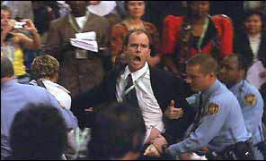 英國廣播公司的消息說,鮑威爾批評津巴布韋和提到美國如何應(yīng)付環(huán)境變化的時(shí)候,遭與會者嘲笑。多次噓聲和“布什可恥”的口號聲使他不得不中斷了當(dāng)天的發(fā)言。